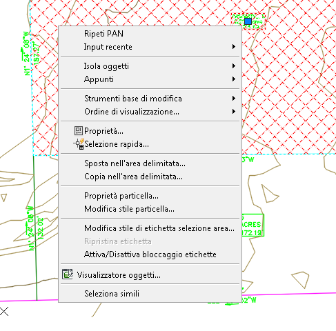 Figura 12: menu contestuale dell'etichetta di selezione dell'area della particella