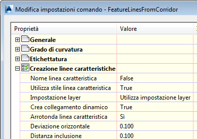 Figura 4: impostazione di comando per arrotondare le linee caratteristiche del modellatore per le scarpate