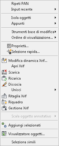 - Selezionare le particelle xrif e fare clic con il pulsante destro del mouse su di esse, quindi osservare i comandi xrif disponibili.