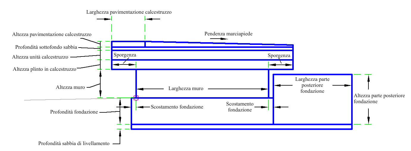 Distanza tra il muro in calcestruzzo e la fondazione. |