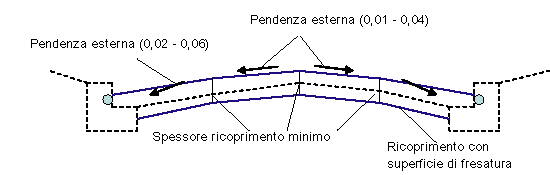 Spessore minimo del ricoprimento in corrispondenza di punti di quarto e colmo stradale.