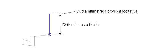 Viene aggiunto un collegamento verticale dal punto di associazione per la deflessione verticale specificata. Se viene specificato un nome profilo per la deflessione verticale, la fine del collegamento corrisponderà alla quota altimetrica del profilo.