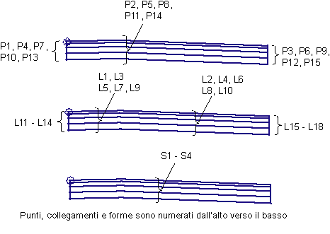 Nella tabella seguente sono elencati i codici punto, collegamento e forma di questo componente sezione tipo ai quali sono assegnati codici. Quelli che non dispongono di codice non sono inclusi nella tabella.