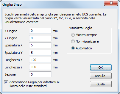 Automatico visualizza la griglia solo quando si sta eseguendo lo snap su griglia.