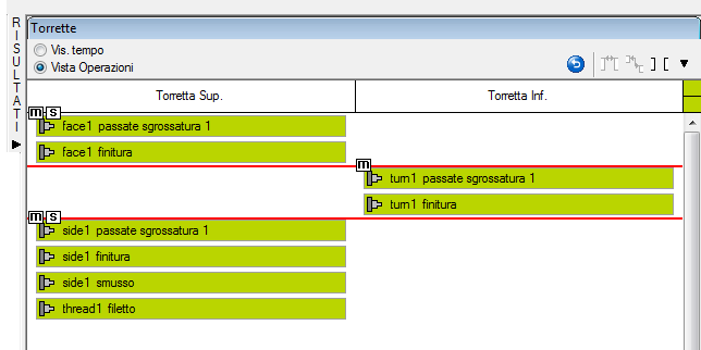 Operations are displayed beside the feature names in columns organized by tool post and spindle.