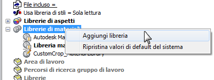 - Fare clic con il pulsante destro del mouse sul nodo Librerie di materiali e selezionare Aggiungi libreria.