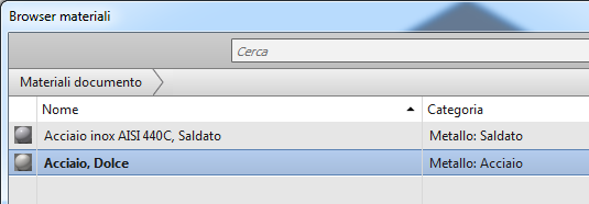 - Aprire il Browser materiali; in Materiali documento sarà possibile visualizzare il materiale. Non è ancora in una libreria da utilizzare con altri componenti.
