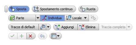 Singola crea una traccia singola per l'intero aggiustamento di posizione, indipendentemente dal numero di componenti spostati. La traccia inizia dalla posizione della triade.