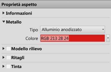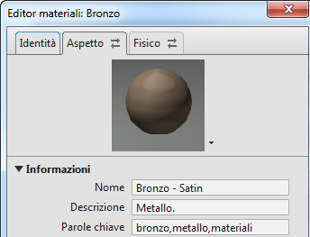 Vedere le impostazioni sulle proprietà dell'aspetto fisico e sulle unità del materiale per informazioni su impostazioni e valori delle proprietà dei materiali.