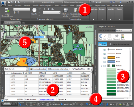 Elementi principali della finestra del prodotto AutoCAD Map 3D