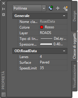 Nella scheda Classe di oggetti della tavolozza Proprietà vengono visualizzate le proprietà associate alla classe dell'oggetto selezionato.