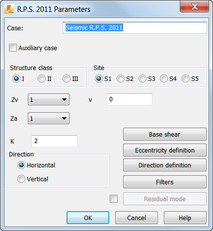 To complete the seismic analysis according to the rules given in this code, define the following parameters: