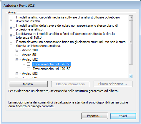 Avviso di esempio: elemento analitico senza i parametri di struttura