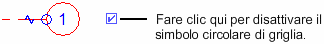 Ripetere questa procedura per visualizzare o nascondere il simbolo circolare posto all'altra estremità della linea di griglia.
