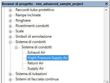 1. Nel Browser di progetto, espandere FamiglieSistema di condottiSistema di condotti.