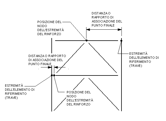 Dopo aver selezionato una delle opzioni, specificare il valore desiderato per Rapporto associazione inizio o Distanza associazione inizio. Se il punto iniziale del controvento è posizionato su un pilastro, l'opzione non è disponibile per tale estremità del controvento.
