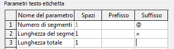 Nei testi etichetta i parametri vengono visualizzati dal primo all'ultimo (dall'alto verso il basso) nell'ordine specificato nel riquadro Parametri testo etichetta. Modificare l'ordine dei parametri di un testo etichetta mediante i pulsanti Sposta parametro su