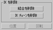 [作成](Create)と[削除](Delete)は機能的には[位置](Position)の各ボタンと同様です。ただし、位置エンド エフェクタではなく、回転エンド エフェクタが対象になります。 IK の回転を実行するには、まず回転エンド エフェクタを追加し、[回転](Rotate)ボタンで追加したエンド エフェクタを回転させます。