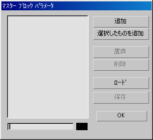 マスター ブロックを割り当てた後、マスター ブロック トラックを右クリックすると、[マスター ブロック パラメータ](Master Block Parameters)ダイアログ ボックスが表示されます。ブロックを作成する際には、このダイアログ ボックスを最初に表示します。