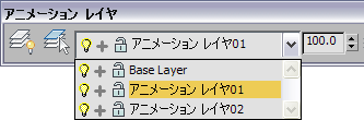 [アニメーションレイヤ]ツールバーのアニメーション レイヤ リストには次のように機能します。一般的なワークフローの例については、このトピックの後の「手順」のセクションを参照してください。