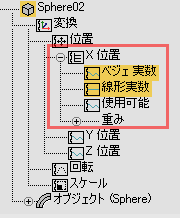 アニメーション レイヤを有効にする場合はコントローラ名が一部変更されるため、再マップが必要です。たとえば、アニメーション レイヤを有効にする前の球の[X 位置](X Position)トラックが Sphere01¥Transform¥Position¥X Position の場合、アニメーション レイヤを有効にした後の球の[X 位置](X Position)トラックは、Sphere01¥Transform¥Position¥Base Layer¥X Position に変更されます(コントローラ名にレイヤ名が挿入されます)。
