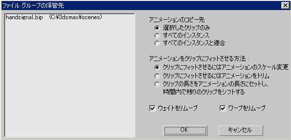 • [クリップにフィットさせるにはアニメーションをトリム](Trim animation to fit clip) トラック内で置換される長さに合わせ、ロードするクリップの長さをトリムします。