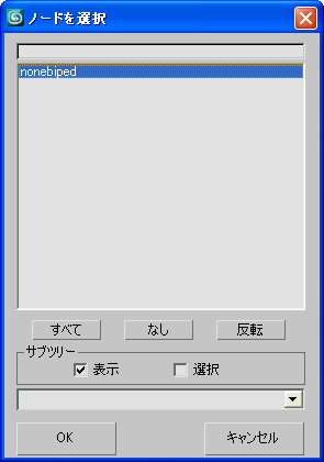 - このリストには、シーンの名前付き選択セットが一覧表示されます。このリストからセットを選択すると、[ノード](Node)リスト内で、そのセットのメンバが選択されます。