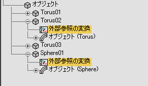 ![]() 外部参照されているオブジェクトの変換コントローラの位置がハイライト表示されています。 |
