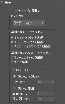 - 有効にすると、モーション パスの表示がトリムされます。