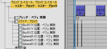 オブジェクトのアニメーションのさまざまな期間で多くのブロックを作成し、[マスター ブロック](MasterBlock)トラックのさまざまな場所で使用できます。