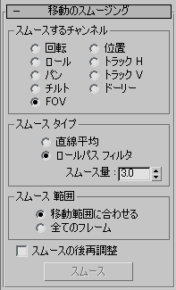 - スムージングの種類、範囲、および量設定に基づいて、ムーブ スムージングを実行します。このボタンが使用不可になっている場合は、現在のマッチング カメラが割り当てられていないことを示します。