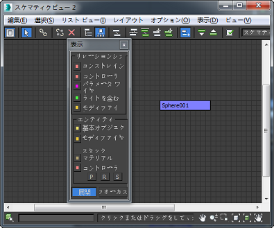 スケマティク ビューが開いて、シーン ノードと表示フロータが表示されます。