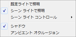 照明およびシャドウをプレビューするためのオプションを含むサブメニューを表示します。