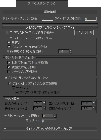 [ラジオシティ専用プロパティ](Radiosity-only Properties)領域