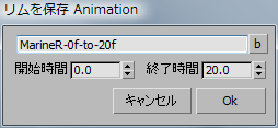 保存するアニメーション ファイルの名前。ファイル名は、保存するボディパーツの名前と、ファイルを保存するフレームに基づいて自動的に指定されます。