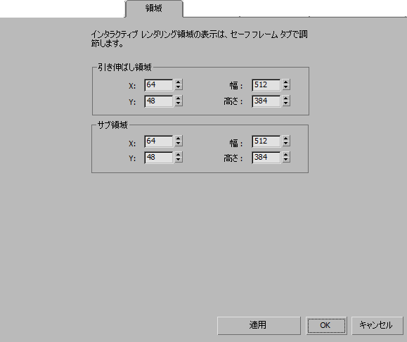 レンダリング範囲の位置とサイズを設定します。「レンダリング範囲」を参照してください。