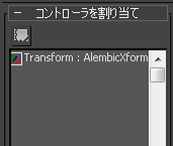 アニメートされた Alembic オブジェクトには、AlembicXform コントローラが割り当てられます。このコントローラは、[モーション](Motion)パネルと[トラック ビュー](Track View)に表示されます。