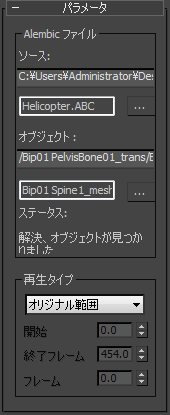 3ds Maxでは、Alembic の ABC ファイルから読み込まれた各オブジェクトが Alembic オブジェクトとして表示されます。アニメートされた Alembic オブジェクトには AlembicXform コントローラがあります。