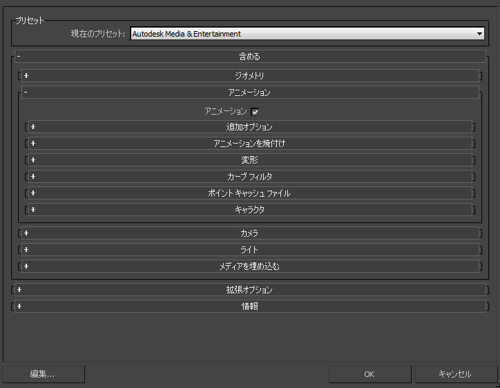 この章では、3ds Max FBX plug-in書き出しウィンドウで使用できるオプションについて説明します。