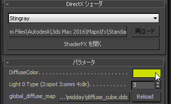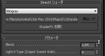- ShaderFX エディタを最小化します。Stingray の[パラメータ](Parameters)ロールアウトで、新しいコントロールを使用して値を設定します。