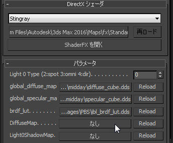 - ShaderFX エディタを最小化します。Stingray の[パラメータ](Parameters)ロールアウトで、新しいコントロールを使用してマップを選択します。