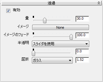 オンにすると、マテリアル全体またはマテリアルの一部が透明になります。既定値ではチェックマークが付いていません。