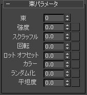 - 値が大きいほど、スクラッフルで束が内側に曲がる程度が大きくなります。束ごとにランダムな方向が使用されます。範囲は 0.0 ~ 400.0 です。