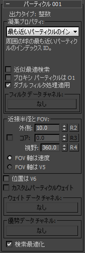 - メモリを多用して凝集の速度を上げます。パーティクルが多い場合はオンにします。パーティクルが少なくてメモリを節約する場合はオフにします。既定値ではチェックマークが付いています。