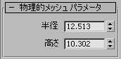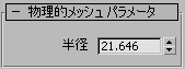 球の物理的シェイプの半径です。 ビューポートでは球はメッシュとして描画されますが、シミュレーションを行う場合はきわめてスムーズな球となります。