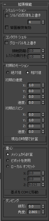 [リジット ボディ プロパティ](Rigid Body Properties)ロールアウト