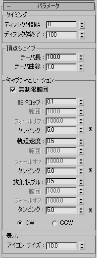 - パーティクルの回転方向を、右回りまたは左回りに指定します。