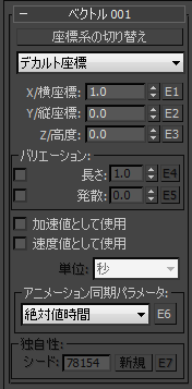 これらの設定は、ベクトル値にランダムな変動を追加する場合に使用します。使用可能なパラメータは、選択したベクトル タイプによって異なります。
