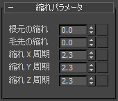 3 つの軸のそれぞれに対する縮れ効果の周期を制御します。既定値は 0.0 です。範囲は 0.0 ~ 100.0 です。