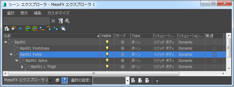 このトピックでは、シーン エクスプローラの MassFX エクスプローラ バージョンに固有のコントロールについて説明します。